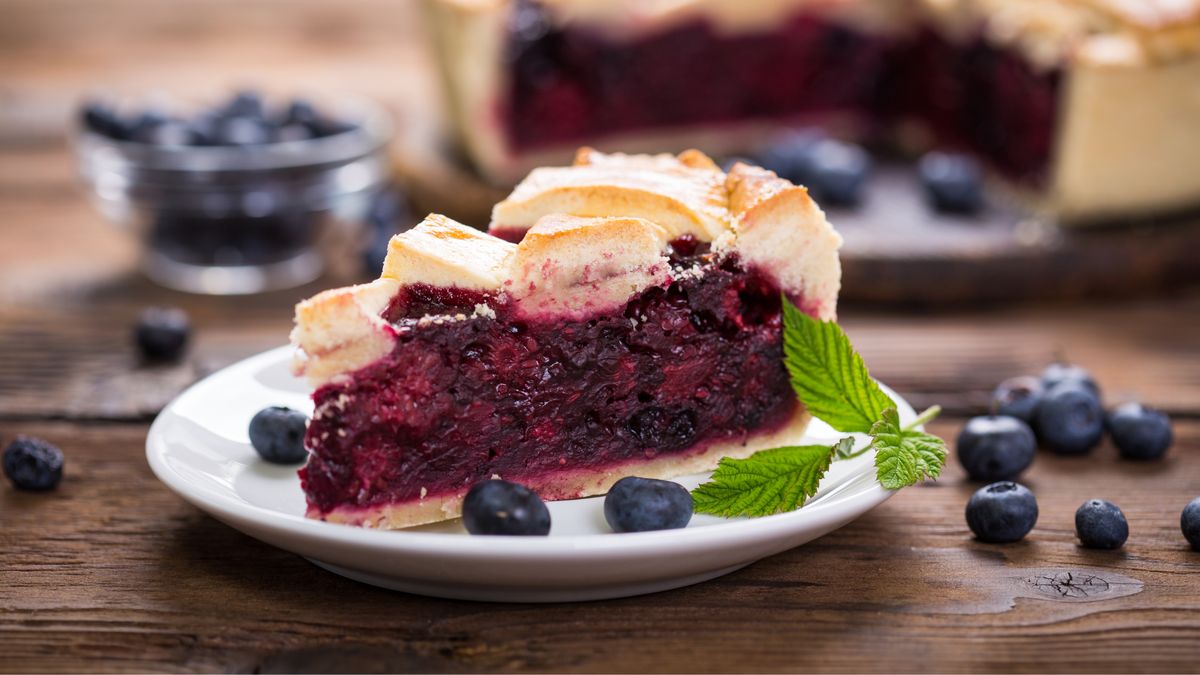 Черника выбирается сезонная или замороженная — главное, чтобы ягоды сохраняли форму. Сахар и крахмал объединяются в одну начинку, которая не пустит соки за пределы пирога. Это маленькое решение даёт ровную, янтарную текстуру внутри.