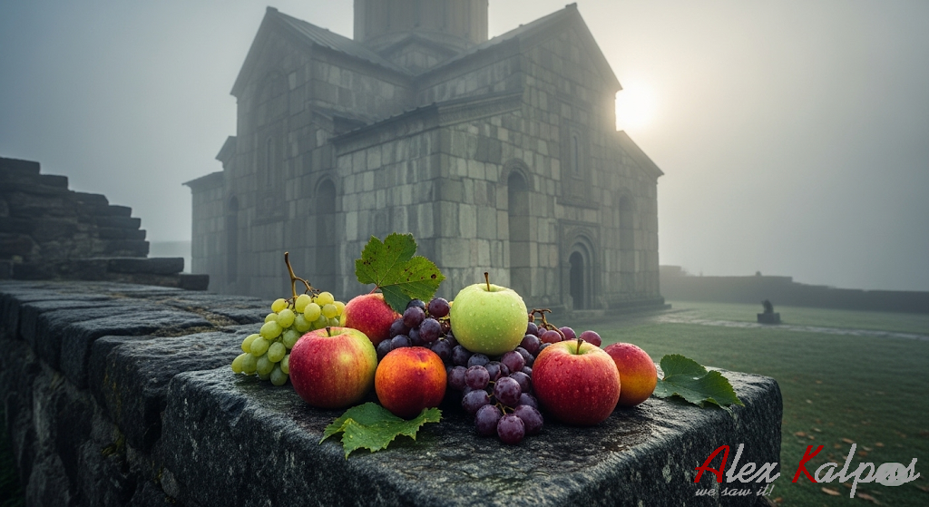В храмы приходят с корзинами винограда, яблок и персиков. Священник читает молитву, а люди возвращаются домой и ставят плоды на стол — и привычный ужин вдруг кажется праздником.
