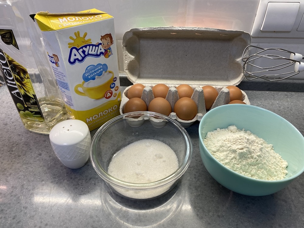 Основные ингредиенты для блинчиков