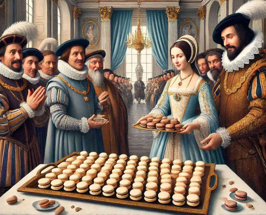 Макароны начали набирать популярность с конца Средневековья, особенно во Франции. Эти сладости стали фаворитом королевских дворов, в том числе при дворе Марии Антуанетты. Несмотря на некоторую художественную вольность, фильмы и книги часто изображают королеву, ласкающую различные цветные макароны.