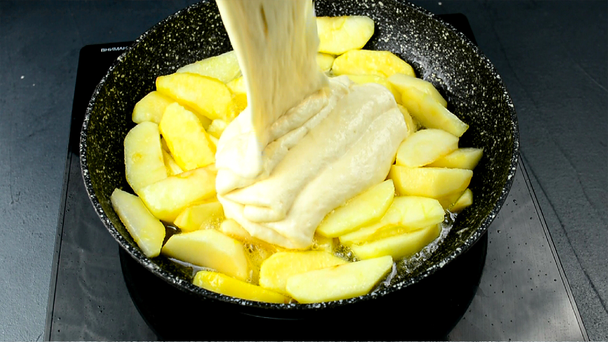 При переворачивании стоит смазать дно сковороды маслом. В результате пирог обретет аппетитный золотистый цвет. Наслаждайтесь вкусом моментально, так как сладкая яблочная начинка и мягкое тесто создают потрясающее сочетание!