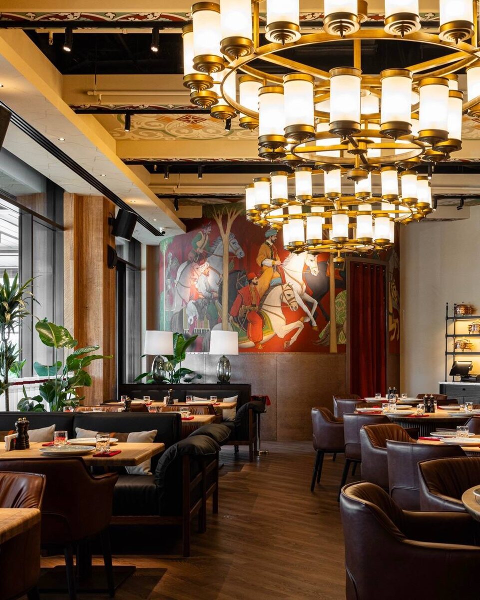 Каждый элемент этого удивительного интерьера вносит свою изюминку: мягкие диваны, окруженные подушками, приглашают расслабиться, а массивные бронзовые люстры добавляют нотку роскоши. Ручная роспись стен и уникальные узоры, напоминающие мозаики, ещё больше подчеркивают восточную тематику заведения.