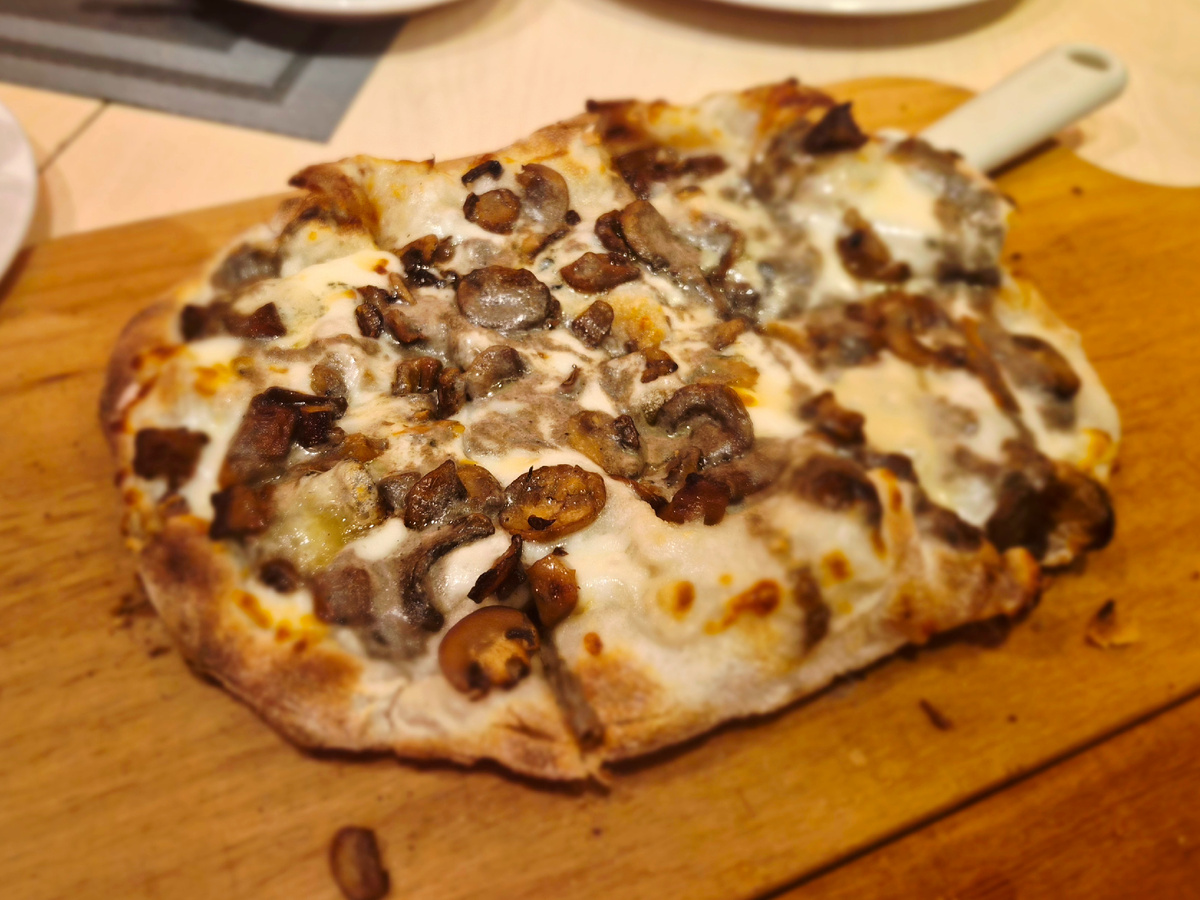 Фаворитом среди местных пинц является вариант с белыми грибами и горгонзолой. Чаще всего, выбор падает на классические пиццы с томатным соусом, но этот вариант впечатлил своим богатым вкусом. Сочетание белых грибов, двух видов сыра и капли трюфельного масла делает блюдо поистине изысканным.
