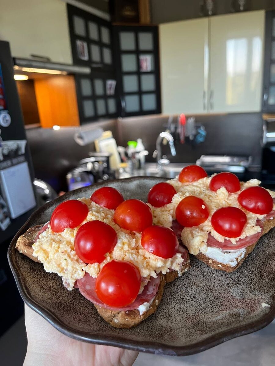 Ваш день пройдёт под знаком итальянского кулинарного вдохновения — брускетта с нежным скрэмблом, свежим сыром и сладкими черри подарит вам больше энергии и хорошее настроение с самого утра.