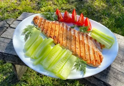 Сегодня в меню — горбуша. Это идеальный вариант для тех, кто следит за своим рационом, ведь она вкусная и легкая. Борясь с излишками влаги, филе горбуши аккуратно промокнуть бумажной салфеткой. Затем его достаточно лишь посолить, поперчить и слегка сбрызнуть растительным маслом — по желанию можно добавить сок лимона для пикантности.