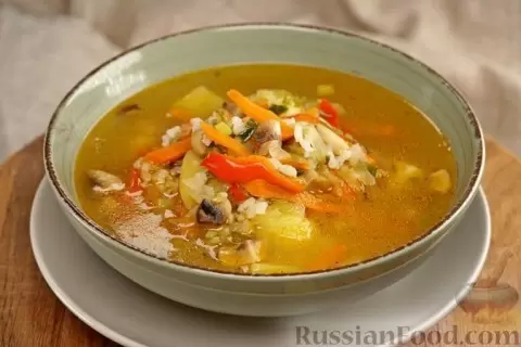 - Рыбный суп с грибами и солеными огурцами – ароматная и наваристая солянка, которая приятно удивит всех любителей рыбы.
