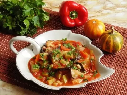 Разнообразие цветов овощей не только радует глаз, но и обогащает блюдо витаминами. Овощные рагу полезны для здоровья благодаря высокому содержанию клетчатки, которая способствует нормализации кишечной микрофлоры и выводу токсинов. Баклажаны, содержащие минимум калорий, идеально подходят для диетического питания, а их богатый состав делает их незаменимыми в рационе.