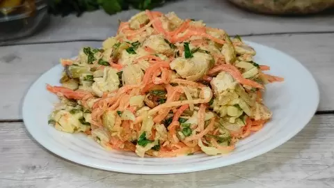 Салат «Лисичка» — это не только яркое, но и сытное лакомство, которое точно станет звездой любого стола. Название этому блюду дали благодаря одному из незаменимых ингредиентов — моркови по-корейски, придающей салату насыщенный оранжевый цвет и особую пикантность.