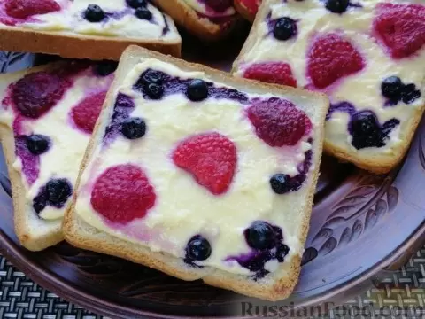 Ингредиенты: тостовый хлеб, творог, ягоды, яйца, сахар.