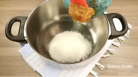 Начните с того, чтобы в небольшой кастрюле смешать сахар, ванильный сахар, мед и щепотку соли, затем добавьте воду. Нагрейте смесь, не доводя до кипения, помешивая, пока сахар полностью не растворится. После этого удобно переложите получившуюся жидкость в глубокую тарелку.