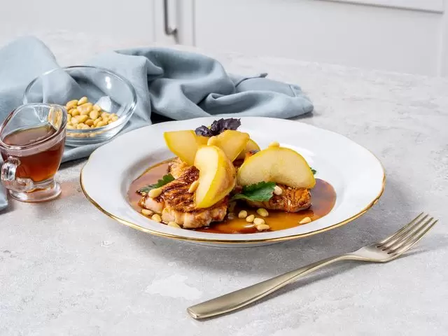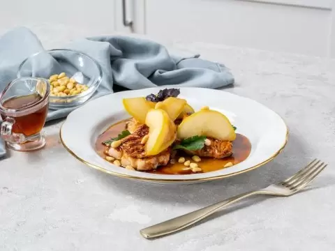 - На тарелке уложить индейку и груши, полить медом и подавать к столу.