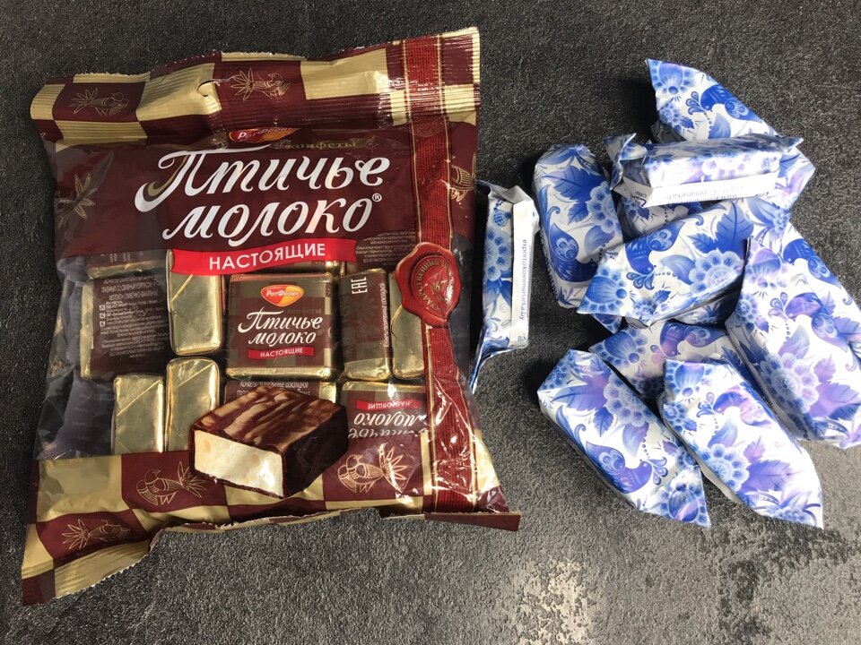 Недавно возникло острое желание снова попробовать эту сладость, и было решено провести небольшой эксперимент, купив «Птичье молоко» от двух популярных производителей: российского «РотФронт» и белорусской фабрики «Коммунарка».