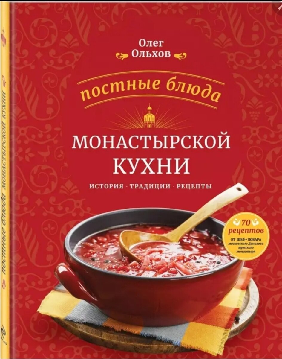 Первый уникальный подарок — книга Олега Ольхова «Постные блюда монастырской кухни». За 800 рублей читатели получат не просто кулинарное руководство, а настоящую жемчужину с 70 постными рецептами из меню Данилова монастыря.