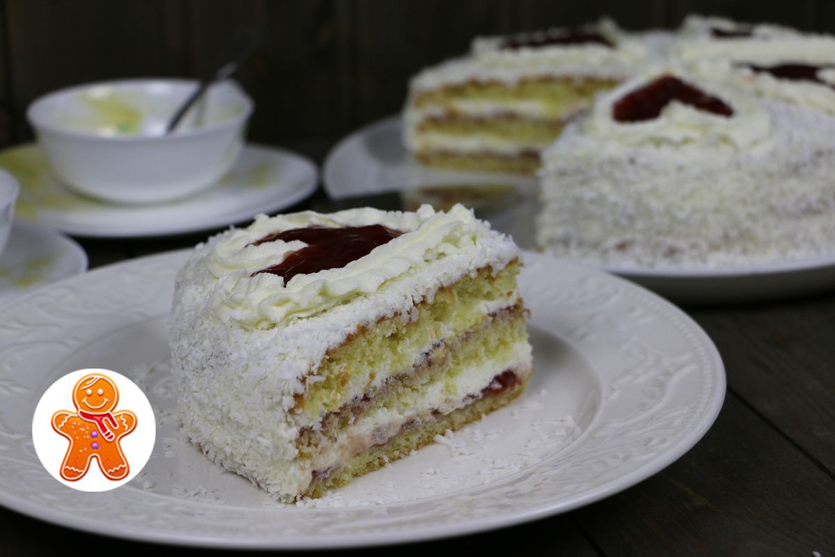 Сегодня представляется уникальный рецепт легкого, воздушного торта, который порадует любителей сладкого. В его составе кокосовая стружка, взбитые сливки и фруктовый конфитюр. Готовится такой десерт быстро и просто, так что стоит попробовать!