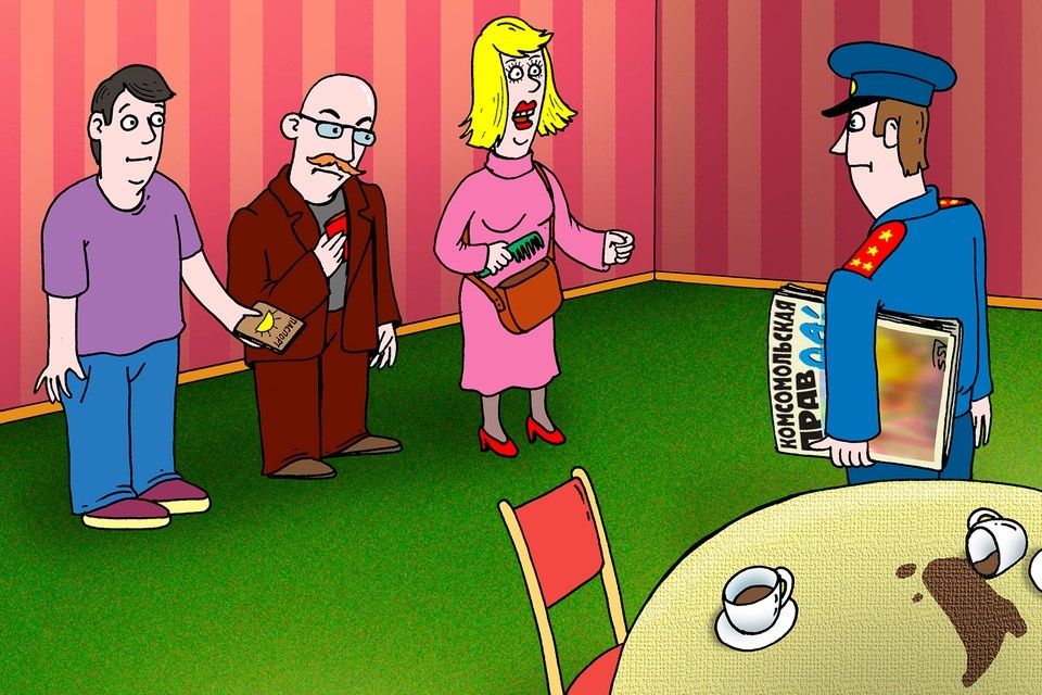 Собрав всех Witnesses в одном месте, капитан начал допрос. В это время одна из женщин, находившихся в кафе, была довольно нервной и с недовольством воскликнула: «У меня в сумочке только косметика и расческа! Вы хотите сказать, что теперь я подозреваемая в убийстве?» Правдолюбов ответил ей, что у него нет к ней претензий, однако его подозрения легли на другого человека.
