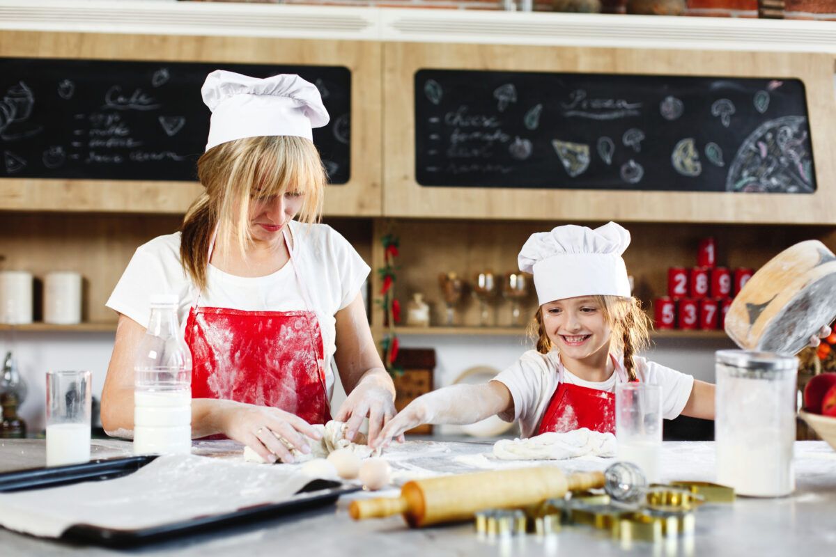 В ходе мастер-классов на импровизированных кухнях родители и дети готовили разнообразные угощения, включая блинчики и салат Цезарь, а также обучались росписи имбирных пряников.