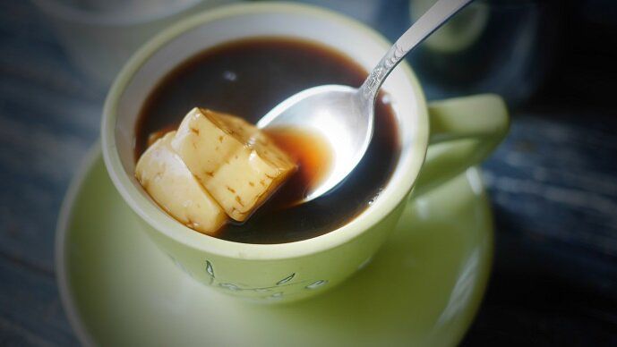 Приготовьте кофе, при необходимости отцеживая гущу. Добавьте сахар и хорошенько перемешайте. На дно чашки положите сыр, нарезанный на четыре части, и залейте его горячим кофе. Наслаждаться напитком можно как с плавленым сыром, так и наоборот — это на ваш выбор.