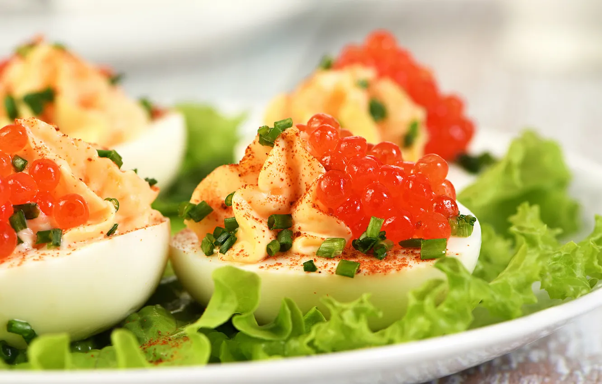 Фаршированные яйца с красной икрой