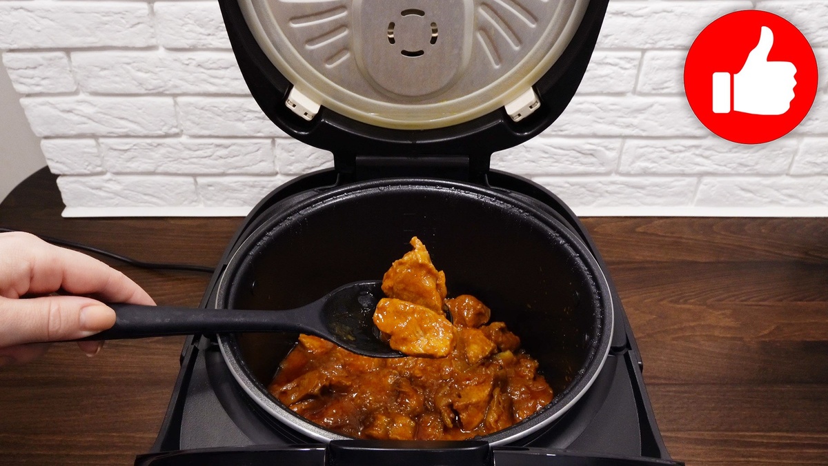Когда мясо замариновалось, следует смазать чашу мультиварки сливочным маслом и выложить в неё смесь с курицей и луком. Далее выбирается режим «Тушение», и блюдо готовится в течение 60 минут. По окончании времени мясо будет мягким, а вкус — насыщенным и аппетитным.