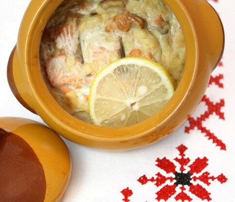 Кусочки лосося аккуратно нарезать на полоски, присыпать рубленым укропом и молотым черным перцем по вкусу.Четыре формы для суфле смазать сливочным маслом. В каждую форму выложить кусочки лосося, затем добавить по 5 чайных ложек сливок. Завершить сборку, вбив по одному яйцу в каждую форму.Разогреть духовку до 170 градусов Цельсия. Поместить формы в жаропрочную ёмкость, наполовину заполненную горячей водой. Запекать закуску в течение 10 минут до тех пор, пока белок не свернется, а желток остался жидким.Перед подачей украсить закуску оставшимся укропом и подать на стол сразу же.Эта крепкая и изысканная закуска непременно вызовет восторг у ваших гостей и станет настоящим хитом на любом торжестве, сообщает Дзен-канал "Еда.ру".
