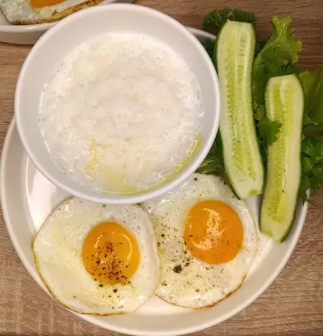 За эти три дня не было возможности взвеситься, но завтрак и обед остались неизменными: в субботу подали рисовую кашу с яичницей, зеленью и огурцами. Также не обошлось без кофе с молоком.
