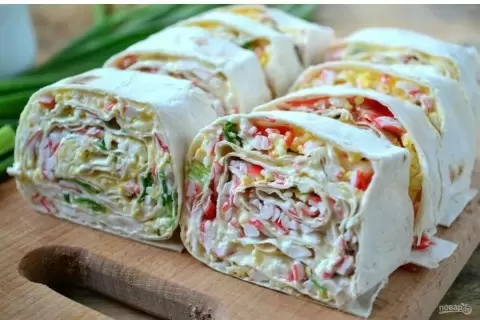 Для любителей кулинарных изысков и оригинальных рецептов представляем идеальный вариант закуски для праздничного стола — рулет из лаваша с крабовыми палочками и сыром. Это блюдо станет настоящим украшением новогоднего застолья!