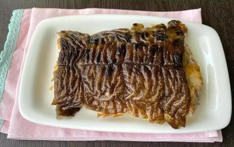 После прочтения рецепта, желание попробовать салат стало невыносимым. При следующих покупках в магазине упор был сделан на зубатку. Найти свежую рыбу оказалось не так просто, но удалось приобрести 500 г этой замысловатой и ароматной рыбы. Учитывая вкусовые качества, возникло опасение, что ее просто не хватит для приготовления салата!