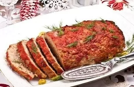 Такой мясной хлеб можно подать как в горячем, так и в холодном виде. Его нарезают ломтиками и украшают зеленью и оливками, что добавляет блюду яркость и оригинальность.