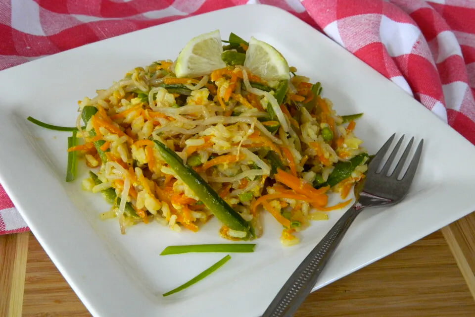 На сковороде или в воке, разогретом с несколькими ложками масла, сначала обжариваются лук и чеснок. Через минуту их можно отодвинуть к краям сковороды и добавить нарезанные овощи и пророщенные бобы. После нескольких минут жарки овощи снова сдвигаются к краям, а в центр сковороды добавляется рис. Всё тщательно перемешивается, приправляется солью, перцем и соевым соусом, а также соком лайма. Завершающий штрих — вливают взбитые яйца, которые нужно перемешивать до тех пор, пока они не приготовятся.