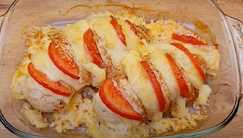 Эти простые ингредиенты в сочетании создают неповторимый вкус. Твердый сыр и помидоры придают курице сочность и свежесть, что особенно важно при запекании.