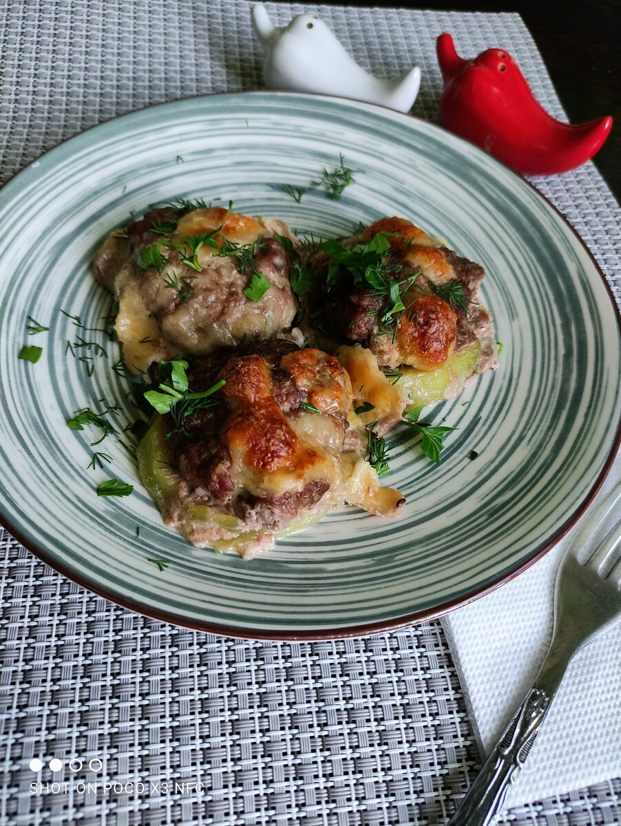 Выпекайте в духовке при температуре 180-190 °C до золотистой корочки сыра и прозрачного мясного сока.