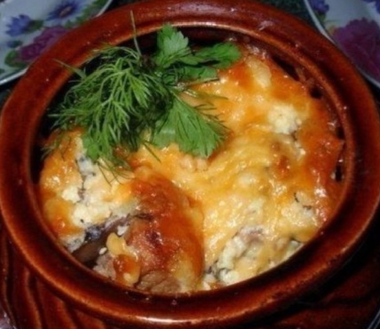 Шаг 4: Спустя час аккуратно достаньте горшочки и засыпьте тертым сыром. Верните в духовку без крышки на 10-15 минут, чтобы сыр подрумянился.